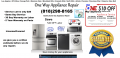 CALL US FOR ALL YOUR APPLIANCE PROBLEMS......... We been servicing on most Major Appliances for over 15 years. We service all appliances in a prompt, professional manner. We guarantee to get the job done right and will work hard to make sure you are 100% completely satisfied. We want to give you the confidence of knowing all your repair needs are in professional hands. We service from many brands of appliances such as GE, Maytag, Kenmore, Whirlpool, Frigidaire, Haier and many others. Whether you have problem with your: * Washer Machine * Dryer Machine * Dishwasher Machine * Stoves/Oven * Freezers * Ice Makers * Refrigerators * One Way Appliance Repair Experts